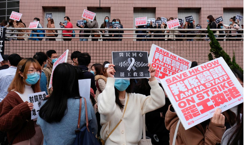 Streiken, som er inne i en opptrappingsfase, har støtte fra et flertall av befolkningen i Hongkong, noe som er oppsiktsvekkende nå som behovet for et fungerende helsevesen er større enn på lenge. Dette kan ikke forstår på annen måte enn at Hongkongs befolkning er rasende på hvordan byens styre håndterer situasjonen. HAEA har fem krav: (1) steng grensene, (2) sørg for tilstrekkelig tilgang på ansiktsmasker, (3) sørg for egnede isolasjonsposter og utsett ikke-kritisk helsehjelp, (4) sørg for tilstrekkelige ordninger for helsepersonell som behandler syke, (5) garantér at ingen blir straffet i ettertid. I en intern e-post har sykehusledelsen (Hospital Authority) gitt beskjed om at de ikke samtykker til streiken, og presisert at streikedeltakelse kun kan skje i henhold til lovgivningen. HAEA har i samråd med sine advokater avvist sykehusledelsens framstilling, og viser til at dette er en sektorstreik (industry strike) som de hevder ikke krever forutgående forhandlinger. Torsdag 6. februar møttes HAEA og sykehusledelsen for samtaler om arbeidsforhold for helsepersonell. Sykehusledelsen var fornøyd med møtet, mens fagforeningens representanter var skuffet over mangelen på konkrete løfter. Noe av de streikende var tilbake på jobb torsdag kveld for å pleie spedbarn, og fagforeningen avsluttet streiken dagen etterpå i henhold til resultatet av en ny avstemning.