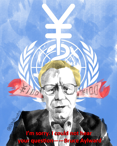 Bruce Aylward, tegnet av den kinesiske eksilkunstneren Badiucao;