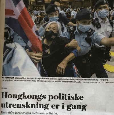 I tiden før sikkerhetsloven hadde Hongkongs befolkning nøyaktig de samme friheter og rettigheter som i Norge. Men nå knuses all opposisjon. De fleste kritikerne som har en høy profil i samfunnet, har oppnådd anerkjennelse i befolkningen gjennom et engasjement som spenner over flere tiår. Derfor er også flere blant den eldre garde blitt ofre i den politiske utrenskningsprosessen som er i full sving.