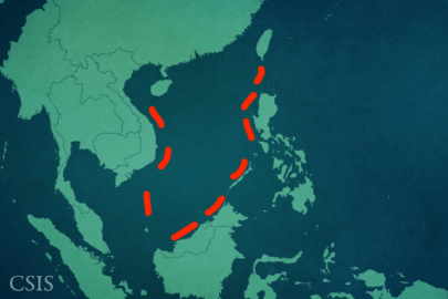 Denne “alliansen” har sine utfordringer. Sør-Kina-havet er et lappeteppe av krav på territorialfarvann der det knapt finnes et rev som ikke minst to stater gjør krav på. Likevel er det ett land som skiller seg ut: Kina. I 1947 presenterte den daværende republikken Kina sitt krav i form av en ni-stiplet linje på et kart over Sør-Kina-havet. Kravet, som er gjengitt på kartet til høyre (rød, stiplet linje), utmerker seg med en nær grenseløs ekspansjonisme, på bekostning av nesten alle andre stater som grenser til havområdet. (Prikkede blå linjer viser utstrekningen til 200-mils økonomiske soner, som er et prinsipp som danner et viktig grunnlag i internasjonal havrett.)