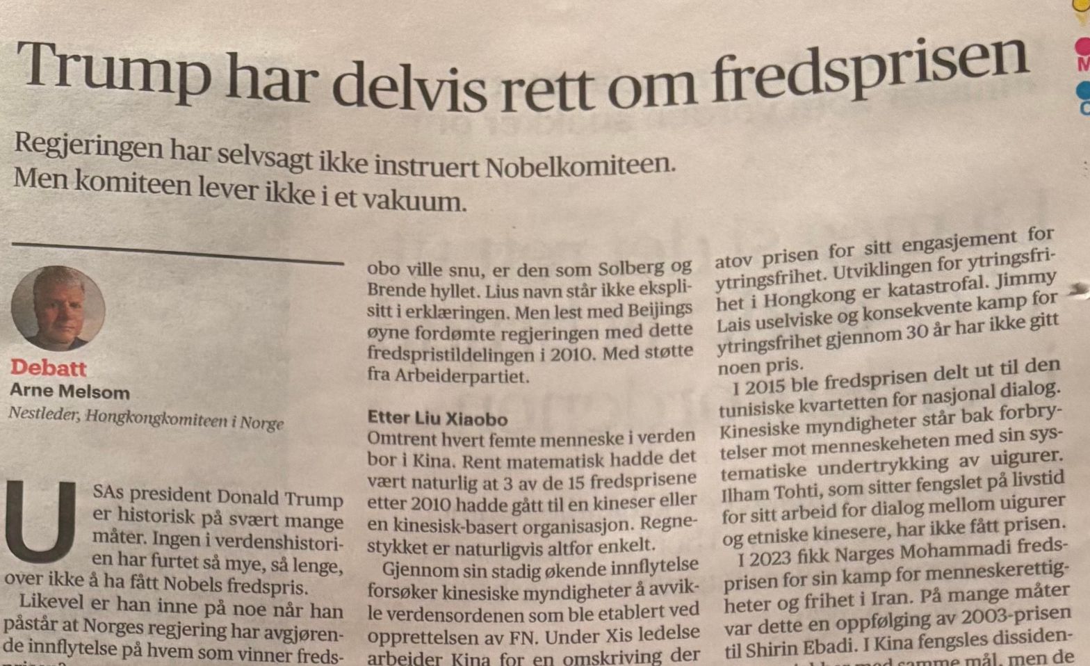Donald Trump er historisk på svært mange måter. Som at ingen i verdenshistorien har furtet så mye, så lenge, over ikke å ha fått Nobels fredspris. Likevel, er han inne på noe når han påstår at Norges regjering har en avgjørende innflytelse på hvem som vinner fredsprisen?