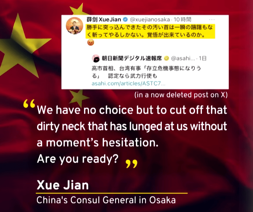 Japans nye statsminister Sanae Takaichi holder forbindelsen til myndighetene i Taipei varm. Hun har uttalt at en militær konflikt som truer Taiwans selvstendighet kan komme til å bli en eksistensiell trussel for Japan. Til Beijings vrede.