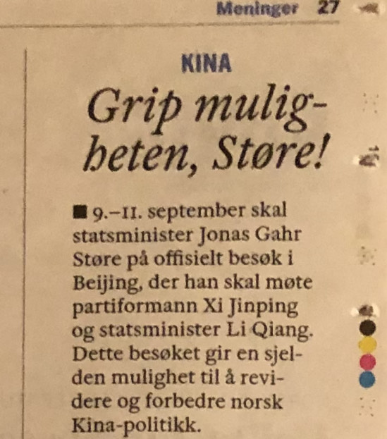 I 2016 la norske og kinesiske myndigheter fram en felles erklæring som skulle legge grunnlaget for det fremtidige bilaterale forholdet. Dokumentet avslører en oppsiktsvekkende grad av norsk underdanighet. Under besøket i Beijing må Støre klargjøre at normaliseringserklæringen ikke lenger er retningsgivende for norsk Kina-politikk.